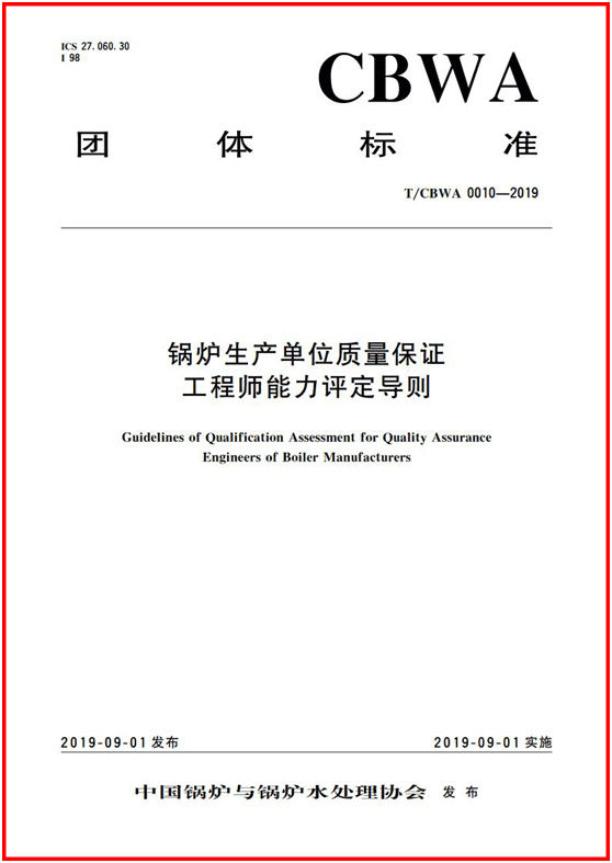 9月1日,由中國鍋爐與鍋爐水處理協(xié)會(huì)主導(dǎo)設(shè)計(jì), 由 方快鍋爐有限公司 參與制定的T/CBWA 0010-2019 《鍋爐生產(chǎn)單位質(zhì)量保證工程師能力評定導(dǎo)則》正式發(fā)布。 這標(biāo)志著方快鍋爐有限公司正式開啟了參與行 業(yè)標(biāo)準(zhǔn)制定的新階段, 掌握標(biāo)準(zhǔn),就如同掌握了行業(yè)制高點(diǎn),掌握了“行業(yè)話語權(quán)” “流企業(yè)做標(biāo)準(zhǔn),二流企業(yè)做技術(shù),三流企業(yè)做產(chǎn)品”。