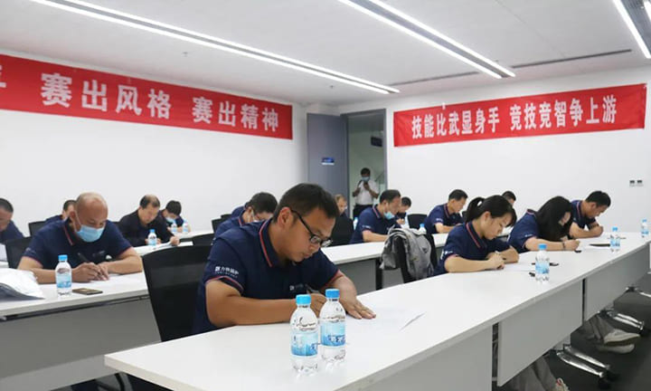 本次比賽分理論考試和實操考試兩大項,時間合計1天。23日上午,來自不同單位的選手們,在方快鍋爐研發中心技能競賽標準考場內,進行了理論考試工作。