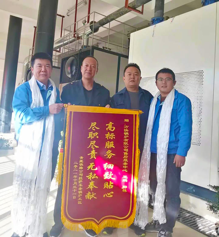 高原地區送暖早,室內熱量要求高。為保障鍋爐的有效運行,技術骨干僅用半天時間就完成了對整套鍋爐的調試,然后留在現場觀察設備運行情況。白天,他們對20名司爐人員進行培訓,用夾雜著安陽口音的普通話一遍又一遍地告知操作流程和常規故障的排除方法。晚上,他們檢測鍋爐運行噪聲在夜間的數值。入夜,大家只能聽到離車務段不遠的布達拉宮的“寶鈴”聲響,鍋爐運行完全符合要求。車務段的工長看著穩定運行的鍋爐,看著煙分儀上達標排放的數字,連連稱贊:“專業、優秀。”