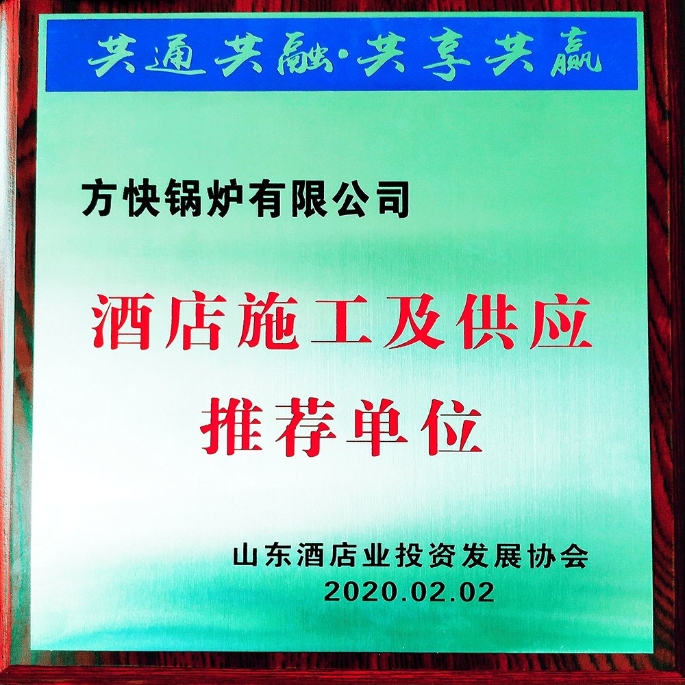 商用全領(lǐng)域熱水解決方案提供者——方快,專注熱水及采暖,深耕酒店行業(yè),為國內(nèi)眾多大中型知名酒店提供了熱水系統(tǒng)項(xiàng)目的建設(shè)和改造。 2020 年 2 月份方快榮獲了山東酒店業(yè)投資發(fā)展協(xié)會頒發(fā)的“酒店施工及供應(yīng)推薦單位”榮譽(yù)稱號。