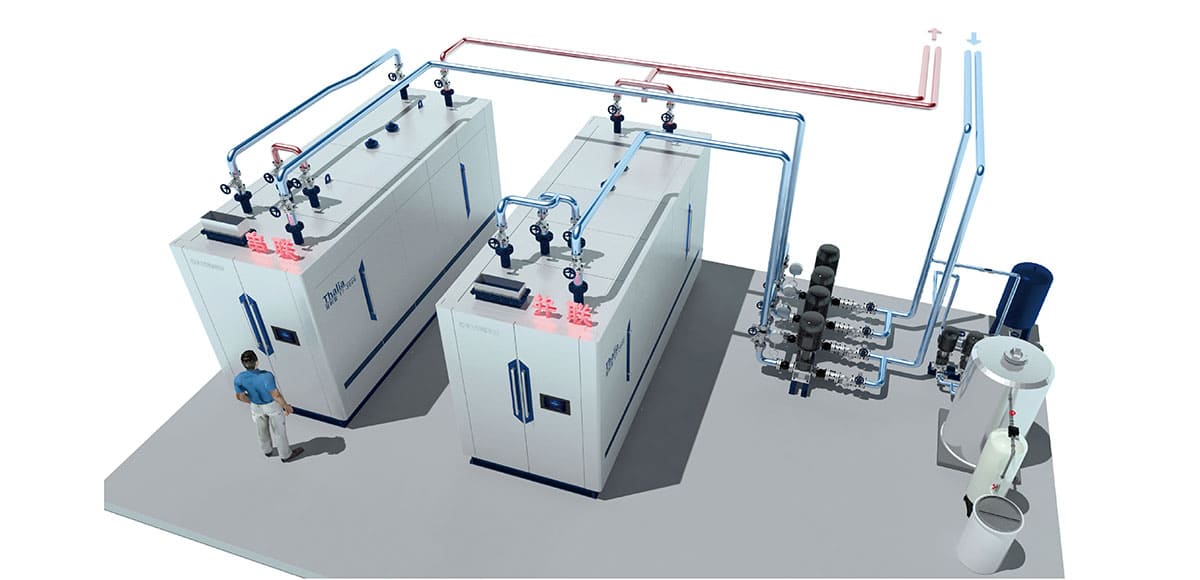 簡介:利用水在低壓下(低于大氣壓)低溫沸騰產(chǎn)生蒸汽,通過汽水凝結(jié)換熱方式將熱量輸出。該型號鍋爐運用新型環(huán)保表面燃燒技術(shù),燃料和空氣進(jìn)行全預(yù)混,通過精密的調(diào)節(jié)和控制,確保燃?xì)夂涂諝馔耆旌希谷紵浞帧O冗M(jìn)的 Ultraten 技術(shù)換熱元件——羽翼管大幅度提高鍋爐換熱效率,極大提升了煙氣冷凝率。鍋爐整體采用耐腐蝕材料,有效延長鍋爐使用壽命。